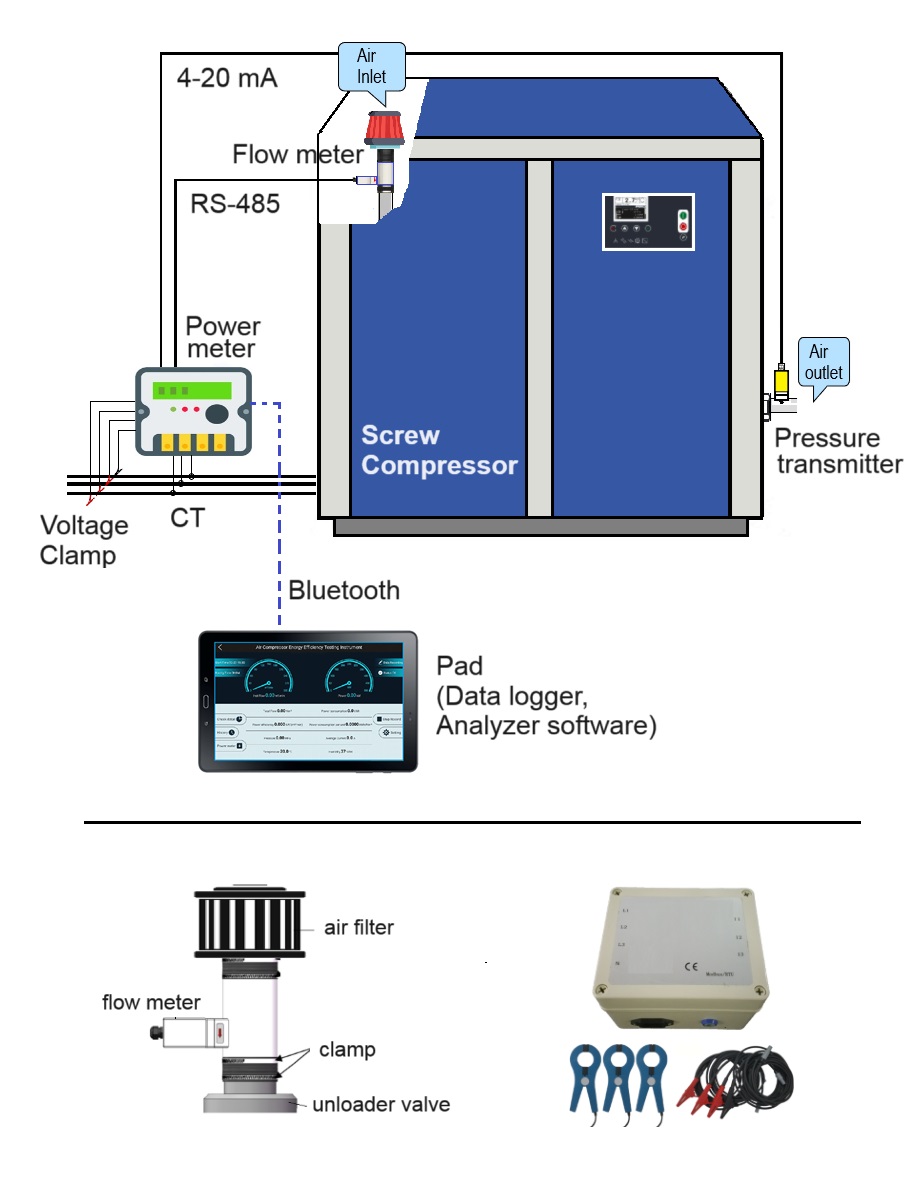 Air compressor performance analyzer, energy consumption analyzer